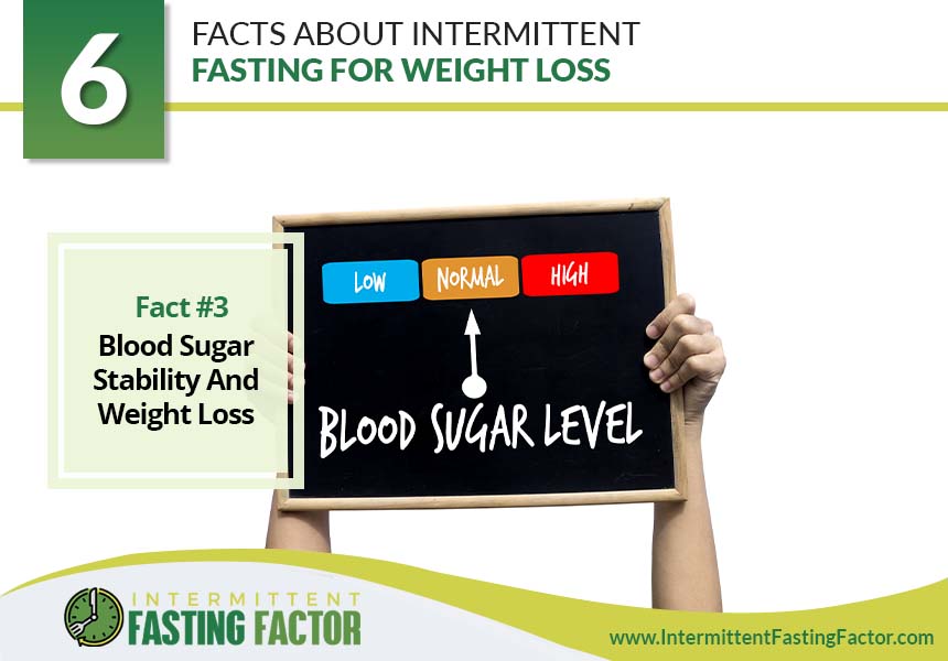 The biggest benefit of intermittent fasting is that it keeps your blood sugar levels stable, and this greatly aids in weight loss. Your body is unable to burn fat if it keeps experiencing spikes in blood sugar levels. Most people eat throughout the day. Every time they eat something, the body releases insulin. The blood sugar level goes up, and the body burns glucose for fuel instead of fat.
